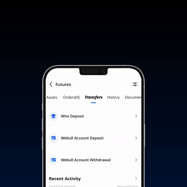 Step 2: Navigate to your futures account page and click on the 'Transfers' tab. After that, click on 'Webull Account Deposit'.